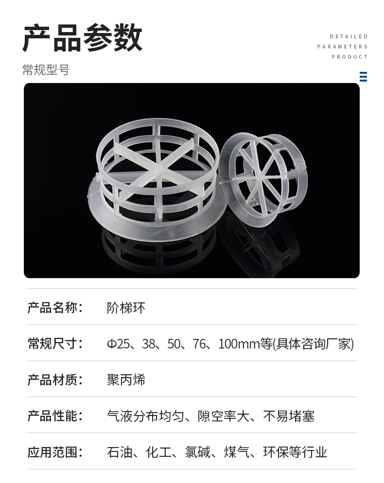 名稱 | 規格 | 直徑x高度x壁厚 | 比表面積 | 空隙率 | 堆重 | 堆積個數 | 干填料因子 |