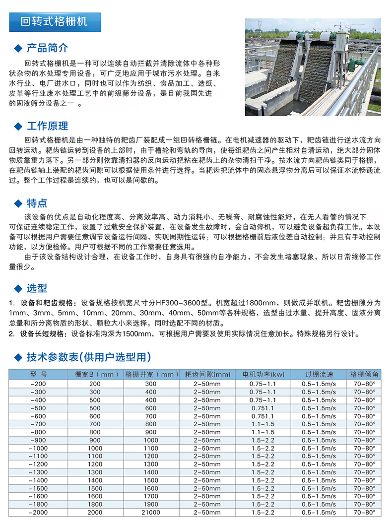 機(jī)械格柵是給水排水處理技術(shù)中早期產(chǎn)生的凈化設(shè)備之一。 它大大地減輕了工人的勞動強(qiáng)度,保護(hù)工人身體健康 , 降低進(jìn)水的水頭損失,提高泵站效率。
